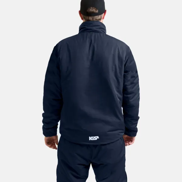 Unik materialkombination för elitprestation Det som gör denna jacka speciell är insidan. Medan yttertyget består av slitstark marinblå polyester som står emot vind och kyla, är fodret (lining) uppblandat med hela 15% elastan. Det innebär att jackan följer minsta rörelse och aldrig stramar över ryggen, samtidigt som den andas effektivt.
